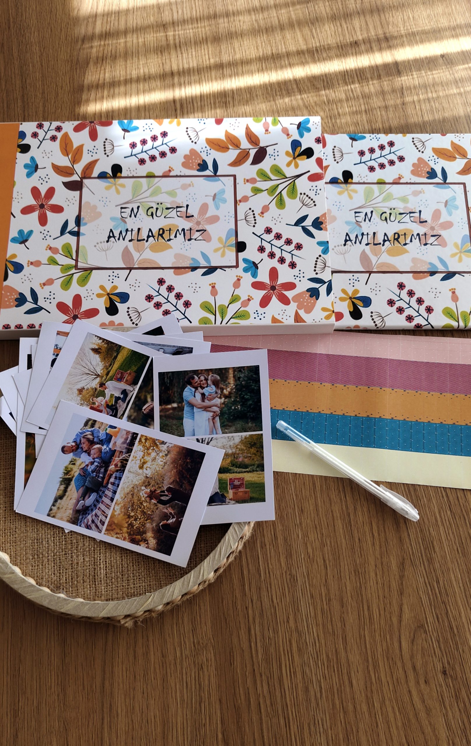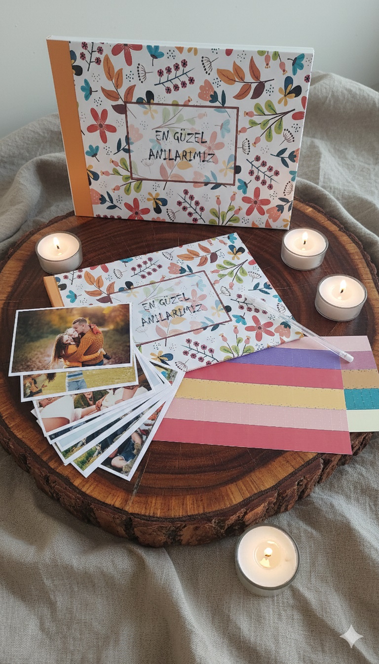 En Güzel Anılarımız Fotoğraf Albümü Anı Defteri Sticker Beyaz Kalem +20 Adet Fotoğraf Baskı + Kutu